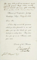 Incoming Correspondence, Agassiz This letter from naturalist Louis Agassiz at the Museum of Comparative Zoology in Cambridge, MA confirms receipt of a sample of wool Joseph Peace Hazard submitted to the Museum.