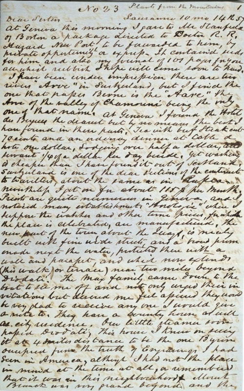 In this letter to his sisters, Joseph Peace Hazard writes about his travels in Germany, Switzerland, and Belgium. Topics include Mount Blanc and the crops, trees, and other plants he observed.