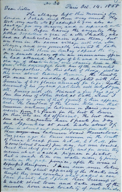 In this letter to his sisters, Joseph Peace Hazard writes about his travels in France. Topics include trips to the Bois de Boulogne, museums of natural history, Basilica Cathedral of Saint Denis, Montmartre, horse races, and waterways, flora, and fauna of the areas he visited.
