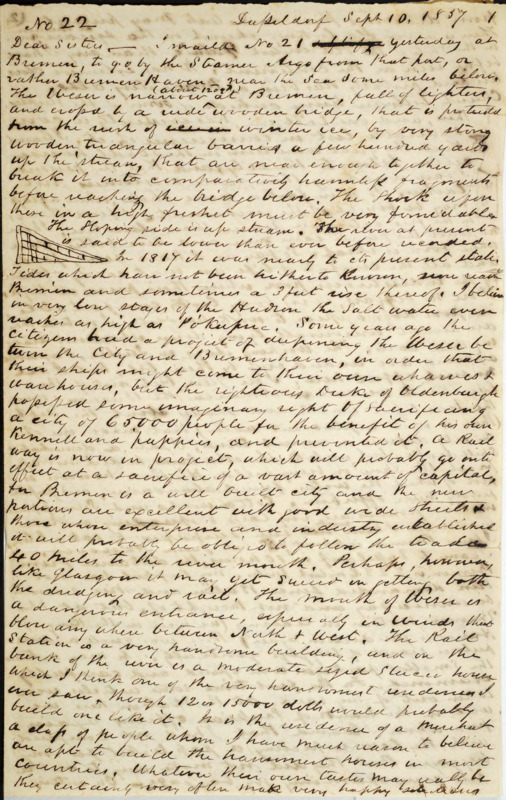 In this letter to his sisters, Joseph Peace Hazard writes about his travels in Germany, Belgium, and Switzerland. Topics include the flora, fauna, and geography he observed, including Lake Zurich, and a visit to a cathedral in Antwerp, possibly The Cathedral of Our Lady.