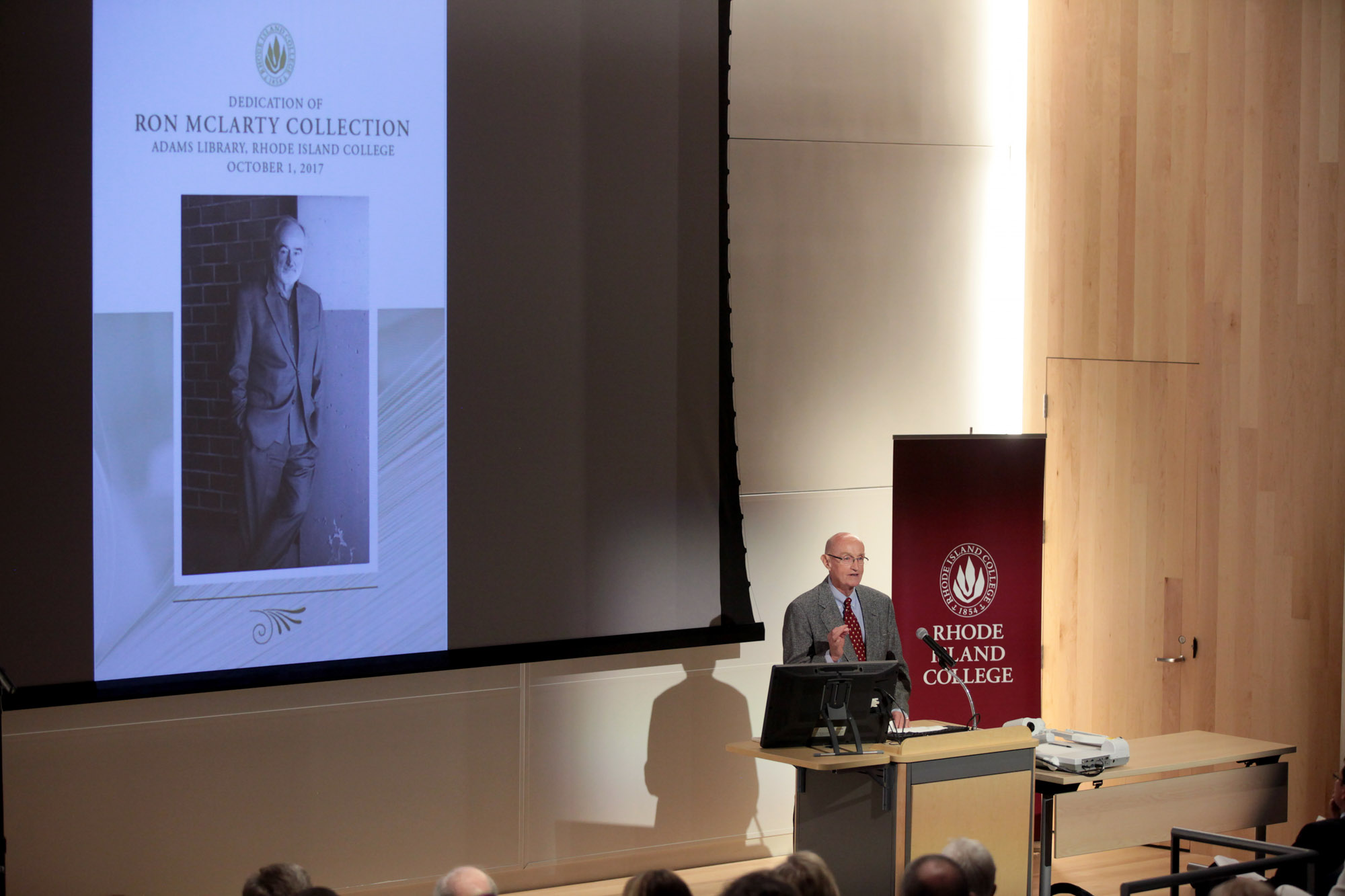 A dedication ceremony was held on October 1, 2017 to celebrate the donation the Ron McLarty Collection to Rhode Island College.